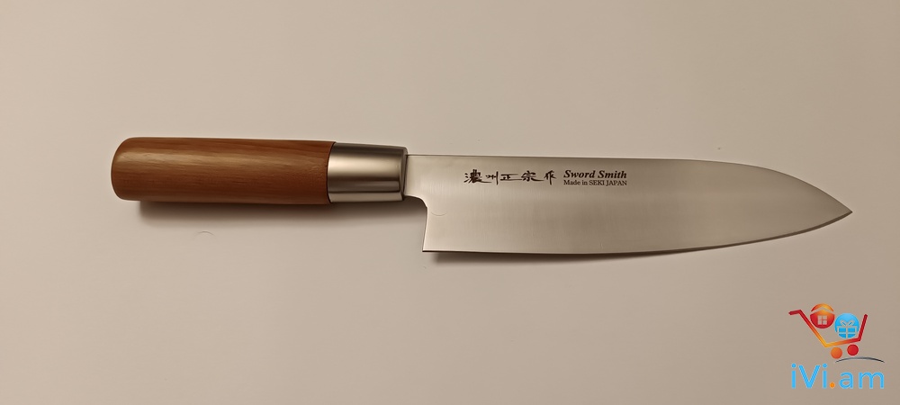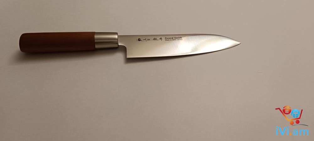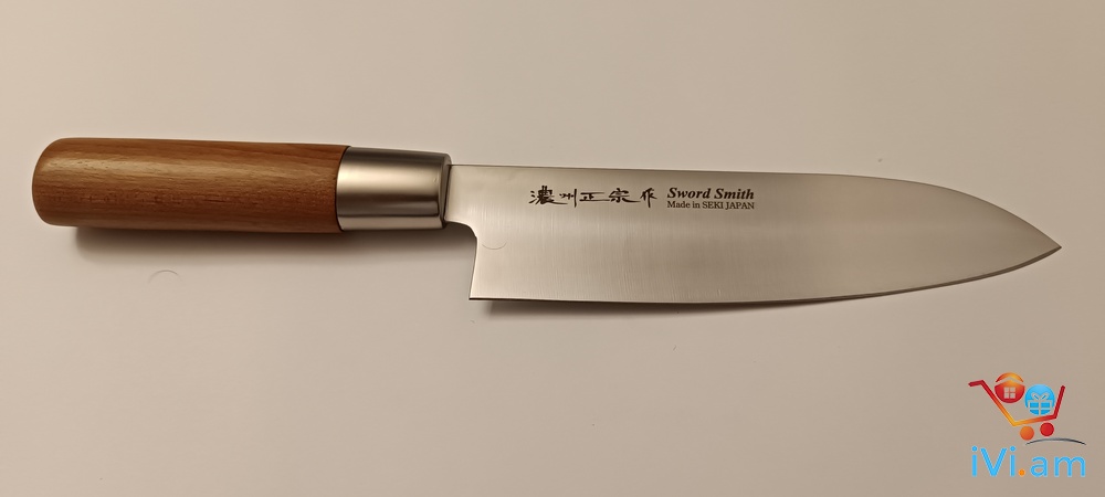 Արտադրման երկիր Ճապոնիա, բրենդ Sword Smith, մետաղը չժանգոտվող պողպատ մոլիբդենի խառնուրդով, ընդհանուր երկարություն 28,5 սմ, շեղբի երկարություն 16,3 սմ, շեղբի հաստություն 1,5 մմ, քաշը 88 գրամ, բռնակը փայտ