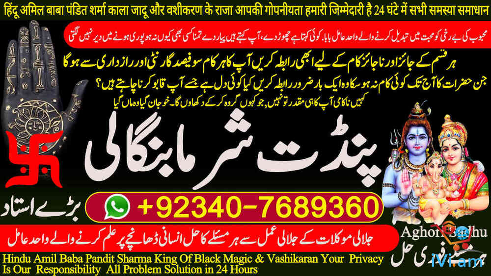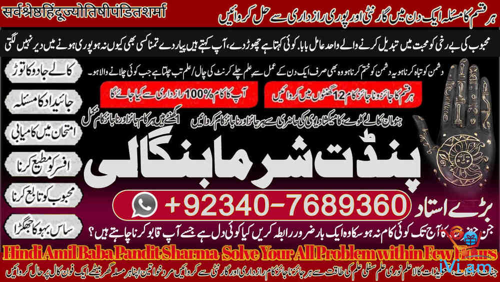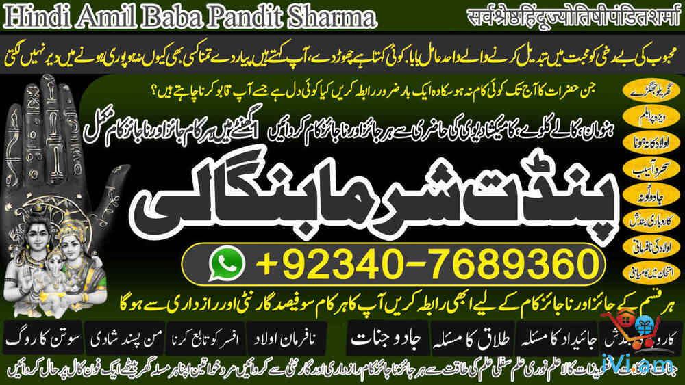 World's Top-Rated Spiritual Healer | Pandit Sharma Ji Amil Baba BLACK MAGIC SPECIALIST / ROHANI AMLIYAT EXPERT Serving Worldwide & Across Pakistan:GLOBAL PRESENCE: Qatar, Canada, UK, USA, Norway, France, UAE (Dubai), Kenya, Fiji, Bahrain. PAKISTAN'S TRUSTED HEALER: Karachi, Lahore, Islamabad, Rawalpindi, and all major cities ,Seeking Permanent Solutions? With over 25 years of proven expertise, Pandit Sharma Ji is the internationally recognized authority in Authentic Kala Ilm, Rohani Amliyat, and Islamic Wazifa.📞 Call / WhatsApp for Immediate Consultation:+92 340 7689360 UAN: +92 340 7689360 Spiritual Field Expertise Kala Ilm & Jadu Removal & Protection Specialist Rohani Amliyat Authentic Spiritual Practices