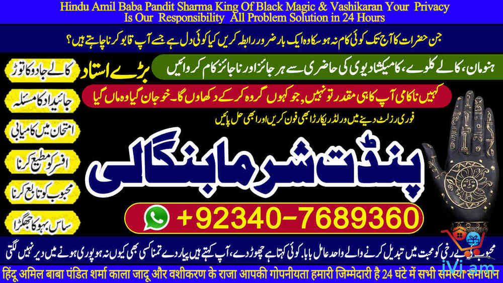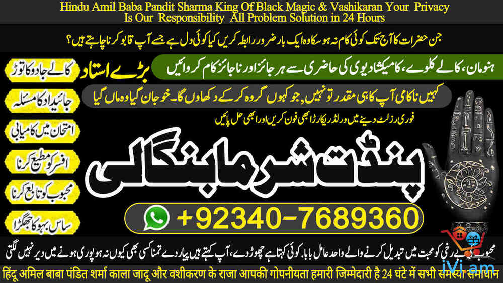 GLOBAL PRESENCE: Qatar, Canada, UK, USA, Norway, France, UAE (Dubai), Kenya, Fiji, Bahrain. PAKISTAN'S TRUSTED HEALER: Karachi, Lahore, Islamabad, Rawalpindi, and all major cities ,Seeking Permanent Solutions? With over 25 years of proven expertise, Pandit Sharma Ji is the internationally recognized authority in Authentic Kala Ilm, Rohani Amliyat, and Islamic Wazifa.📞 Call / WhatsApp for Immediate Consultation:+92 340 7689360 UAN: +92 340 7689360 Spiritual Field Expertise Kala Ilm & Jadu Removal & Protection Specialist Rohani Amliyat Authentic Spiritual Practices