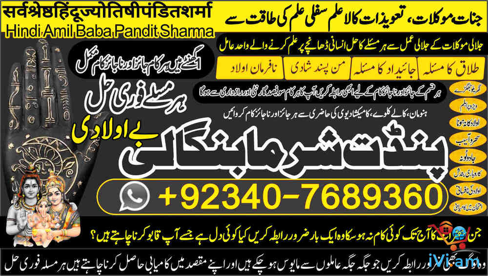 GLOBAL PRESENCE: Qatar, Canada, UK, USA, Norway, France, UAE (Dubai), Kenya, Fiji, Bahrain. PAKISTAN'S TRUSTED HEALER: Karachi, Lahore, Islamabad, Rawalpindi, and all major cities ,Seeking Permanent Solutions? With over 25 years of proven expertise, Pandit Sharma Ji is the internationally recognized authority in Authentic Kala Ilm, Rohani Amliyat, and Islamic Wazifa.📞 Call / WhatsApp for Immediate Consultation:+92 340 7689360 UAN: +92 340 7689360 Spiritual Field Expertise Kala Ilm & Jadu Removal & Protection Specialist Rohani Amliyat Authentic Spiritual Practices