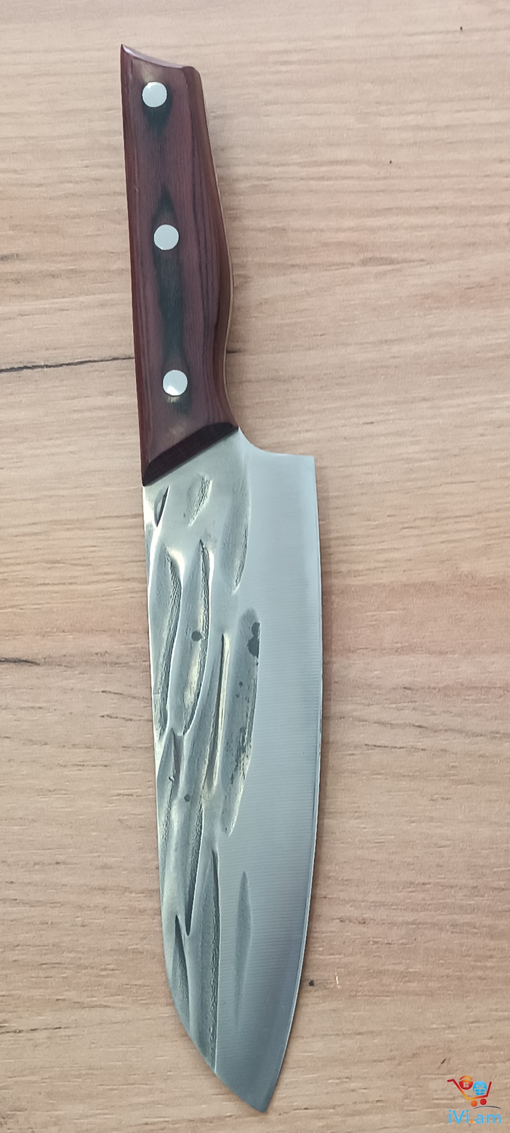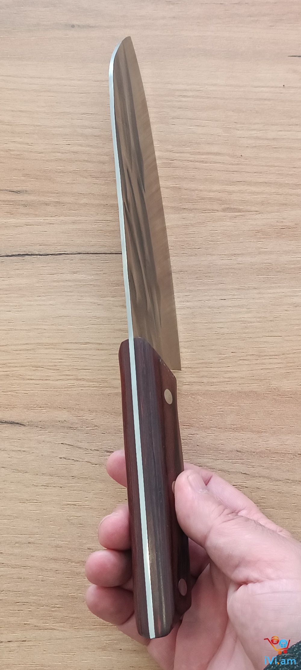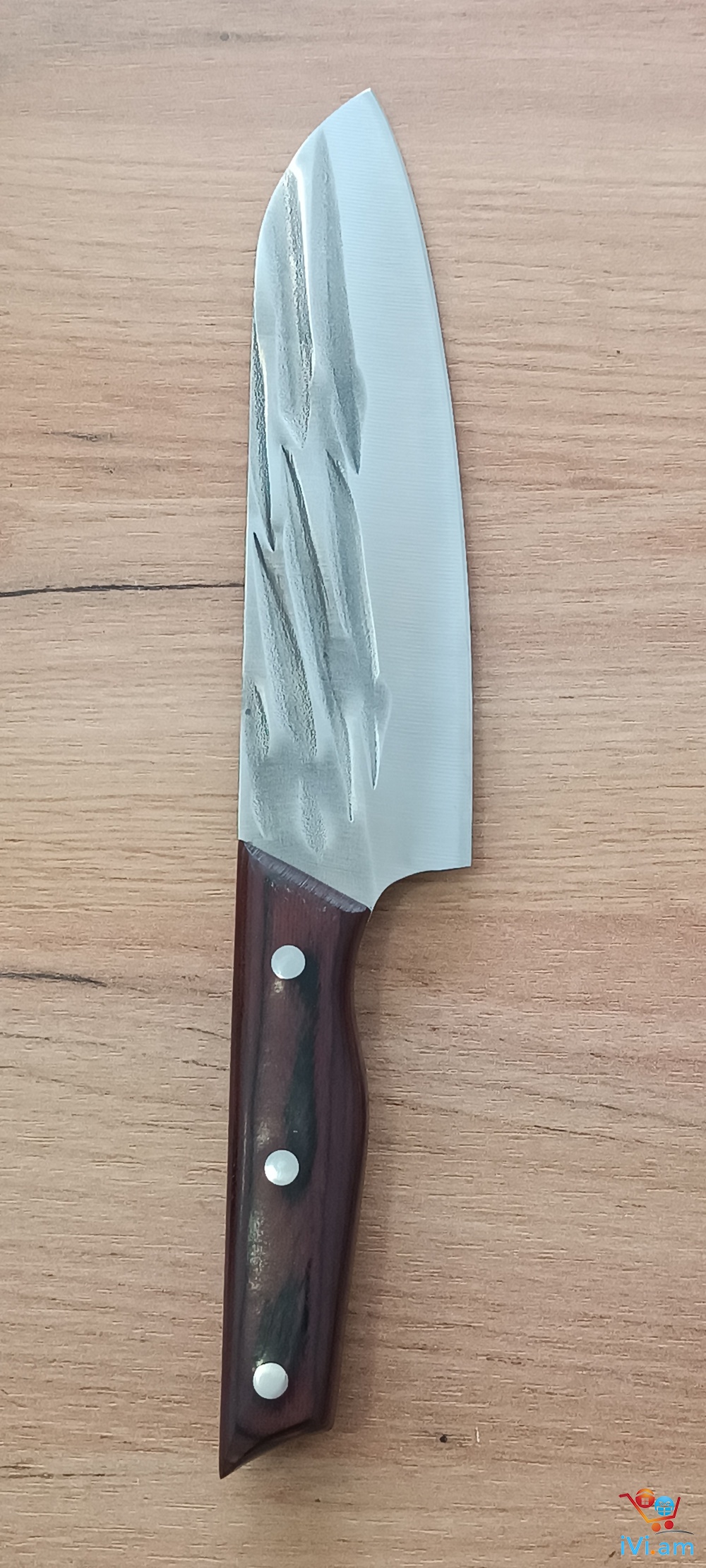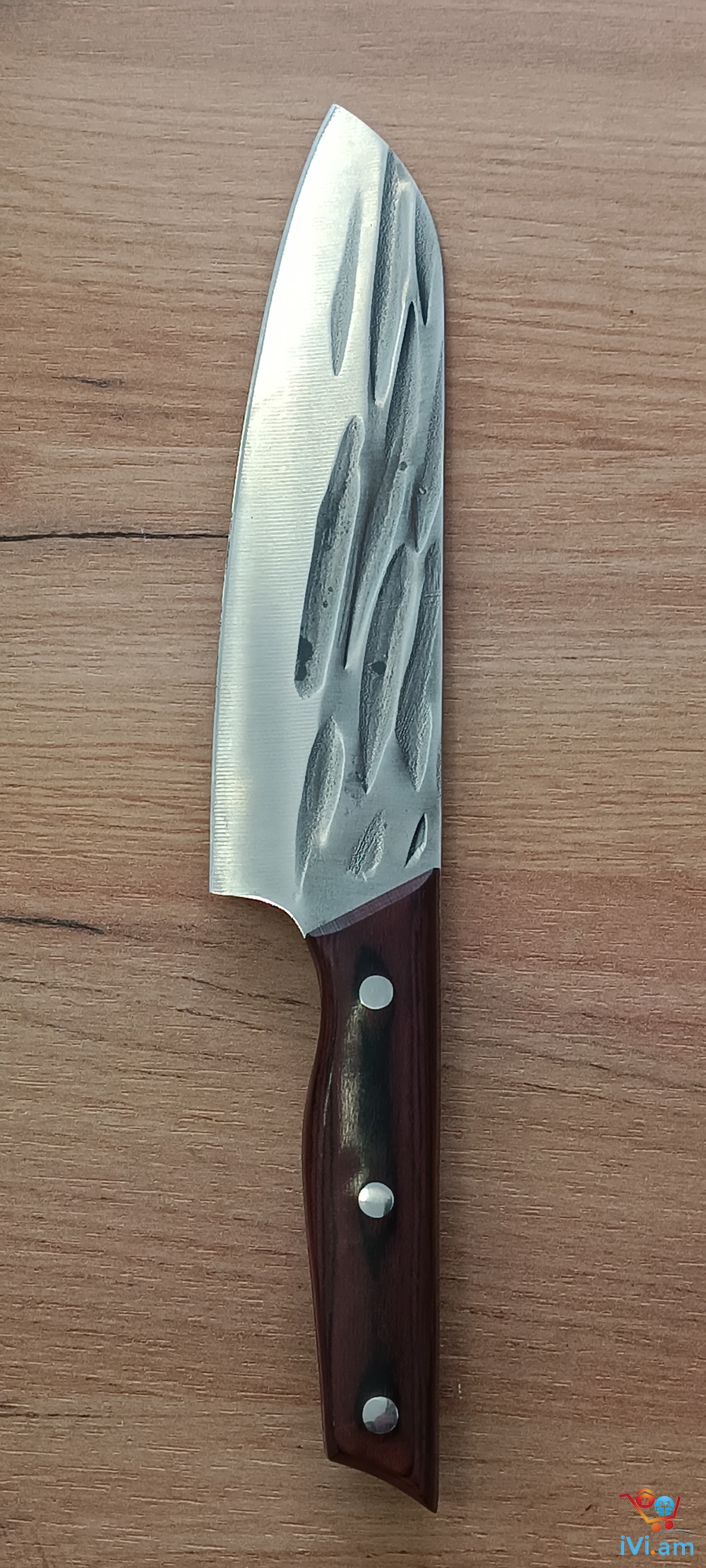 Դանակ Սանտոկու, մետաղը 5Cr15Mov, ընդհանուր երկարություն 30 սմ , շեղբի երկարություն 18 սմ , մետաղը ամբողջական, բռնակը փայտ